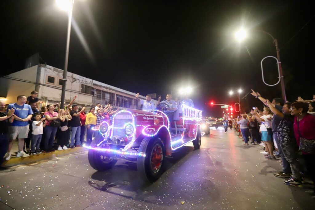 CD. JUAREZ, CHIH.- Con la asistencia de más de 35 mil Juarenses, el Presidente Municipal, Cruz Pérez Cuéllar, acompañado de su familia y funcionarios municipales, presenciaron el Desfile Nocturno «Arriba Juárez», en la avenida 16 de Septiembre.