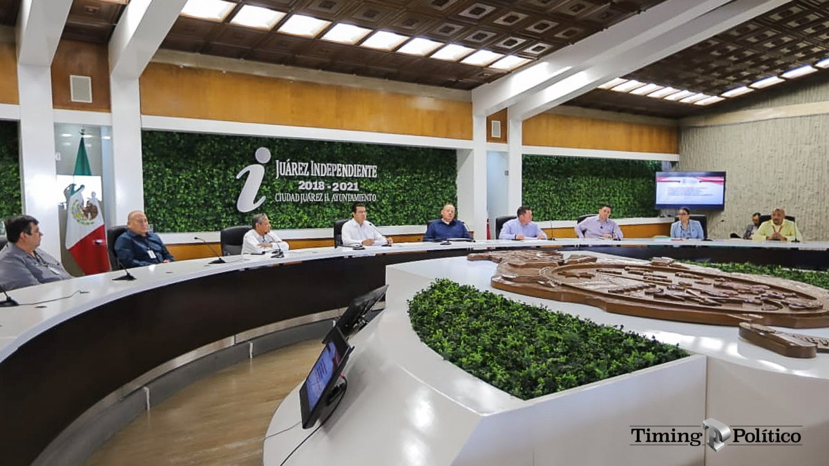 CD. JUÁREZ, CHIH.- En el marco de la Sesión 67 Ordinaria de Cabildo, los integrantes del pleno aprobaron por unanimidad de votos de los presentes, el punto de acuerdo especial y urgente presentado por el Presidente Municipal, Armando Cabada Alvídrez, para que las próximas sesiones de Cabildo se puedan celebrar por videoconferencia en lugar de ser presenciales, durante el tiempo que persista la pandemia por el brote de Coronavirus COVID-19.