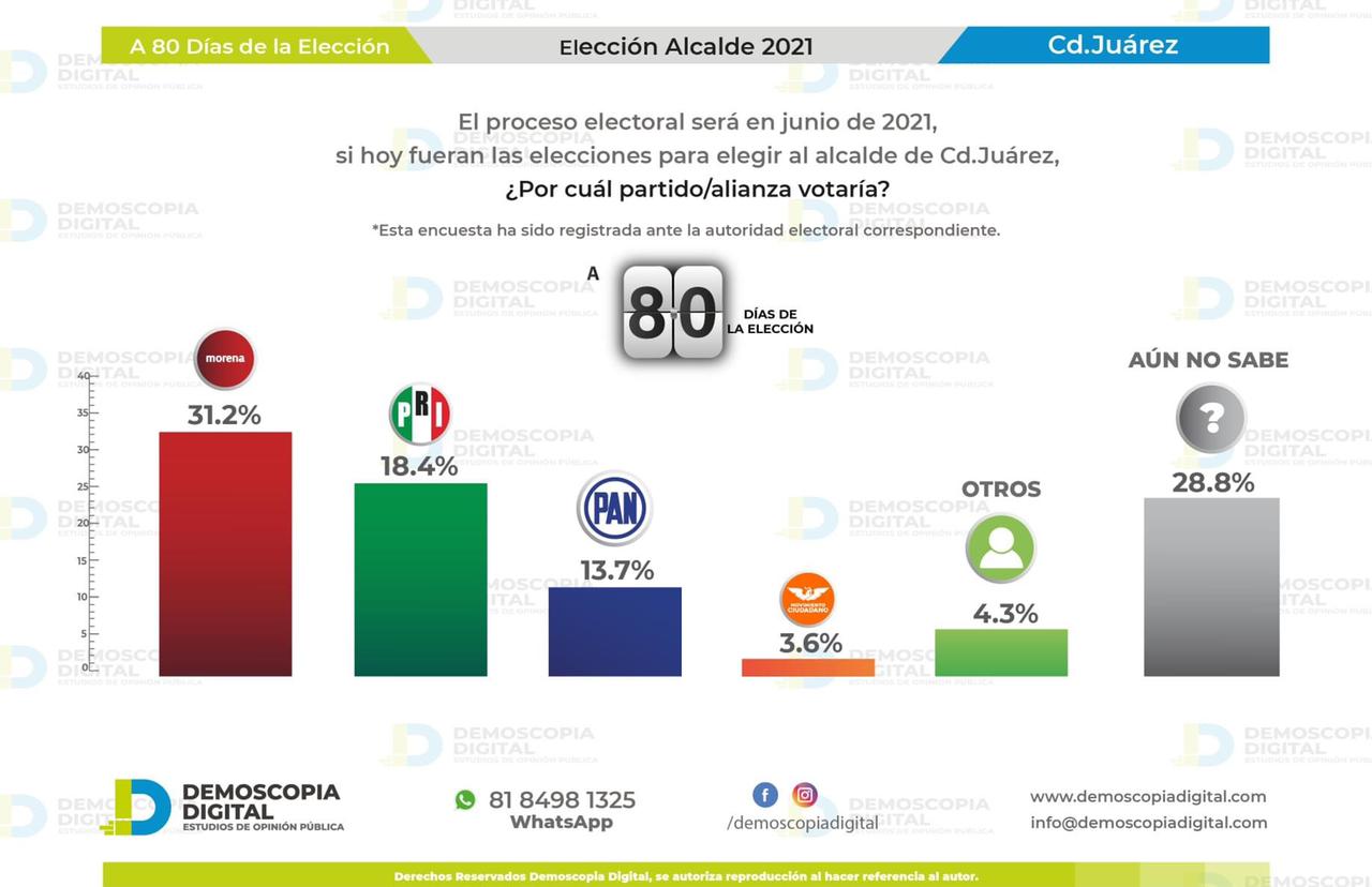 Los resultados de esta investigación se dan a conocer a 80 días de la celebración de las elecciones del 6 de junio, con la finalidad de mostrar el panorama de electoral de este país.