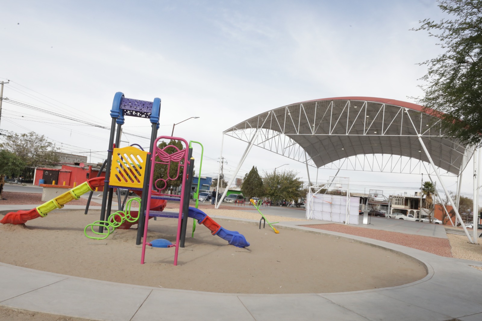 “Hoy estamos entregando esta obra donde se colocó una cancha nueva, domo y luminarias para recuperar este espacio y que las familias del sector puedan disfrutarlo», expresó el alcalde en la ceremonia efectuada en este espacio que se ubica en la colonia Ampliación Aeropuerto y beneficiará a más de 5 mil residentes del sector.