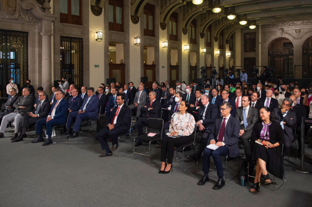 Acompañaron al jefe del Ejecutivo, la secretaria de Economía, Tatiana Clouthier Carrillo; los secretarios de Gobernación, Adán Augusto López Hernández; de Agricultura y Desarrollo Rural, Víctor Villalobos Arámbula; de Infraestructura, Comunicaciones y Transportes, Jorge Arganis Díaz Leal y el procurador Federal del Consumidor, Ricardo Sheffield Padilla.