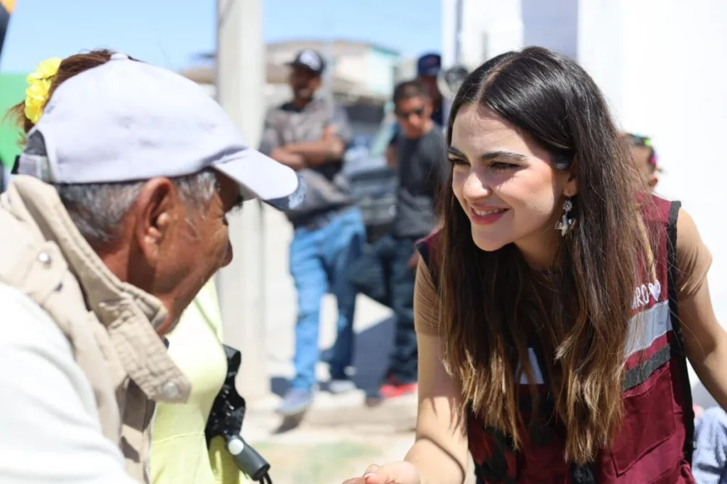 La senadora busca la candidatura a la gubernatura para el 2027 y está en plena campaña adelantada, aunque lo niega, pese a que su nombre, rostro, logotipos y colores de Morena están en las cuatro unidades de la caravana.