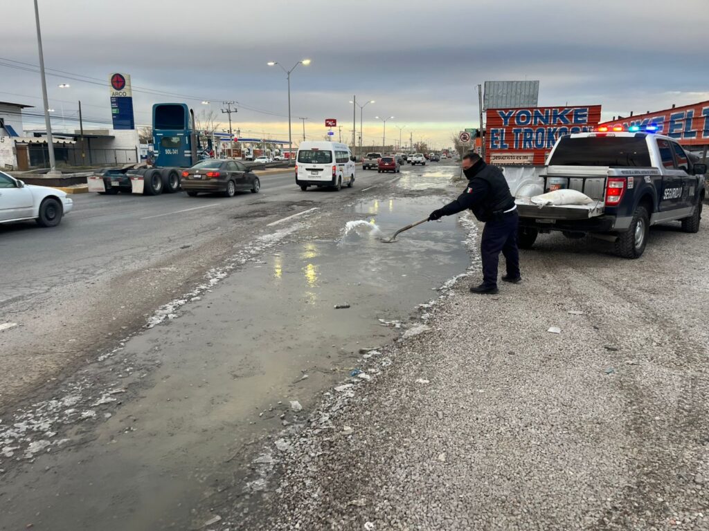 CD. JUAREZ, CHIH.- Ante la posibilidad de que por las bajas temperaturas se pudieran dar casos de cristalización de las calles, agentes de la Coordinación General de Seguridad Vial se preparan para esparcir sal y arena sobre las vialidades en las que se registre ese problema, con el fin de evitar cualquier tipo de incidentes.