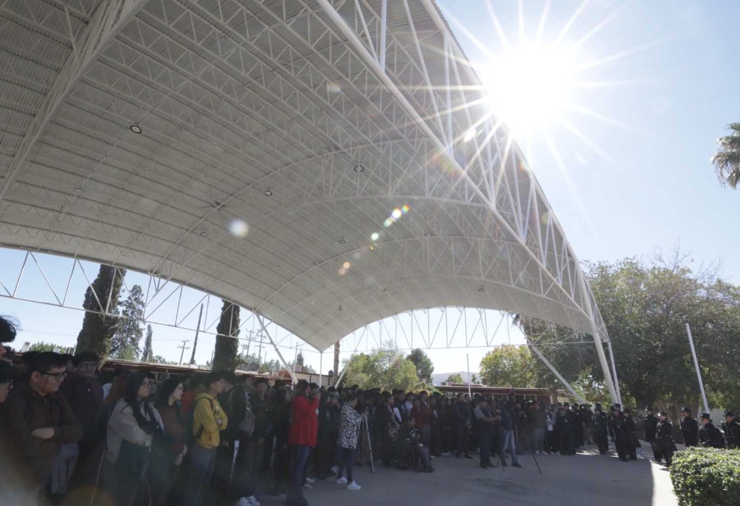 “Es un gran logro esta obra, que no habría sido posible sin su apoyo y sin su compromiso, esto es una realidad, un espacio que protegerá de las inclemencias del tiempo a los alumnos”, resaltó en su mensaje la alumna Leslie Monreal.