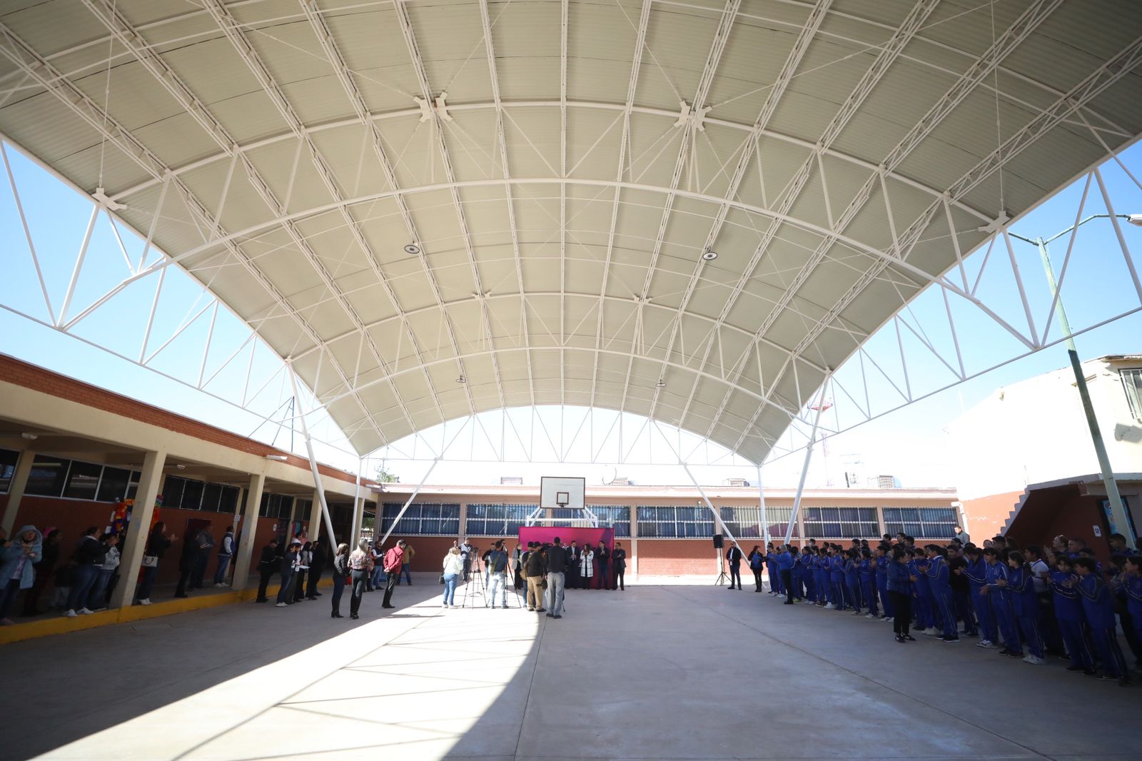 CD. JUAREZ, CHIH.- Esta mañana el Presidente Municipal, Cruz Pérez Cuéllar acudió a la Escuela Secundaria Federal número 9, para hacer entrega oficial de un domo, dentro del programa de Rehabilitación a Escuelas Públicas de la localidad.