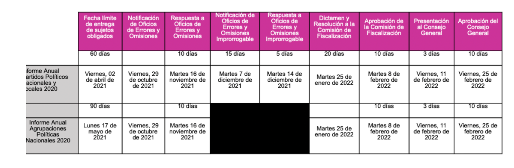 Con esta determinación, los partidos políticos nacionales y locales deberán entregar al INE antes del 2 de abril los informes de ingresos y gastos correspondientes al 2020, mientras que las Agrupaciones Nacionales tendrán que hacerlo a más tardar el 17 de mayo próximo.