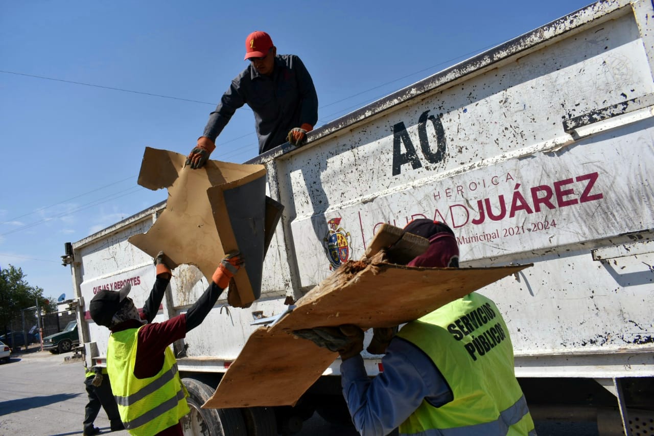 CD. JUAREZ, CHIH.- Personal de la Dirección de Limpia atendió el fraccionamiento Urbivillas del Cedro etapa II con el programa de destilichadero, con el fin de auxiliar a los vecinos del sector a desechar los artículos en desuso que generan basura y proliferación de fauna nociva.