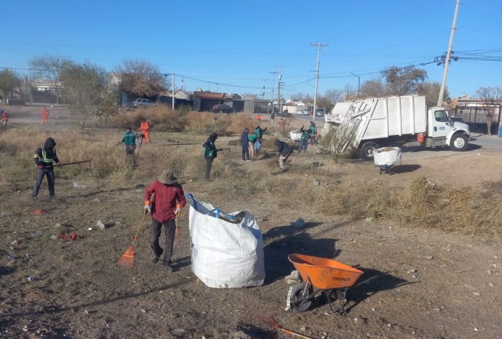 CD. JUAREZ, CHIH.- El personal de la Dirección de Limpia llevó a cabo trabajos de limpieza en un dique ubicado en el fraccionamiento Senderos de San Isidro, hacia el sur de la ciudad.