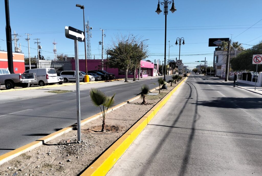 CD. JUAREZ, CHIH.- La Dirección General de Servicios Públicos Municipales, a través de la Dirección de Parques y Jardines, llevó a cabo distintas labores de limpieza y mantenimiento en el camellón central de la avenida 16 de Septiembre.