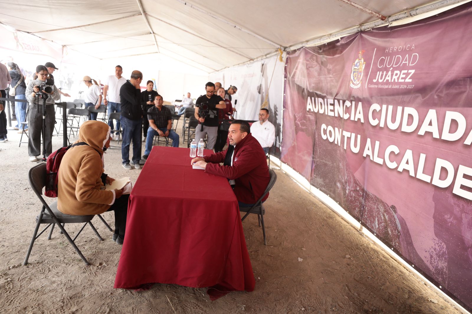 CD. JUAREZ, CHIH.- Este día, en la Cruzada por Juárez «Atención a las causas, Juárez por la Paz», en la avenida De los Aztecas 7114-7042, en la colonia Azteca, el Presidente Municipal Cruz Pérez Cuéllar, atendió a los ciudadanos del sector.