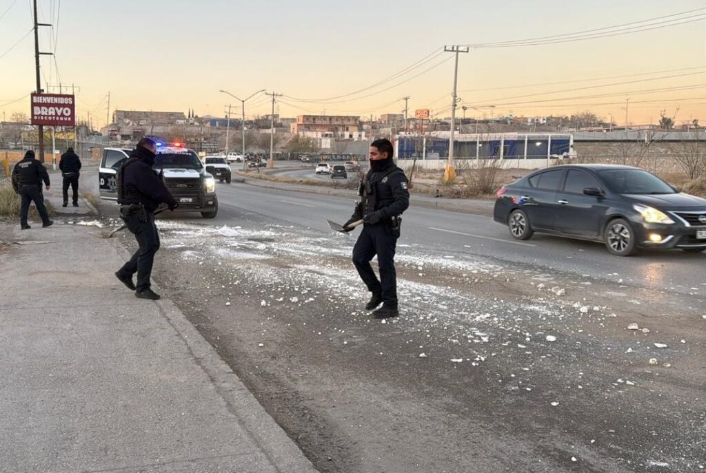 CD. JUAREZ, CHIH.- Poco más de 40 calles fueron atendidas por parte de los agentes de la Coordinación General de Seguridad Vial, puntos en los cuales fue esparcida sal y arena, con el fin de evitar percances por la cristalización del pavimento, por las bajas temperaturas que se han presentado en los últimos días en la ciudad.