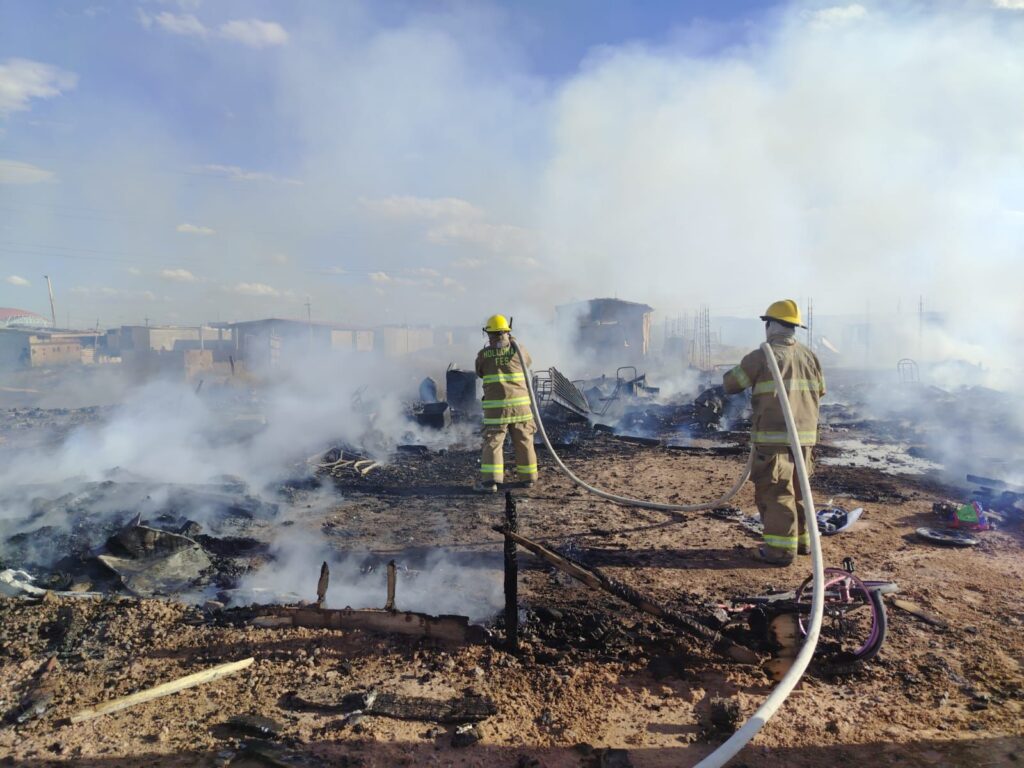 De acuerdo con el informe oficial, el siniestro afectó tres viviendas pertenecientes a distintos propietarios, las cuales estaban construidas en su totalidad con materiales de madera, ubicadas dentro de un predio aproximado de 50 por 20 metros. El fuego consumió por completo las estructuras.