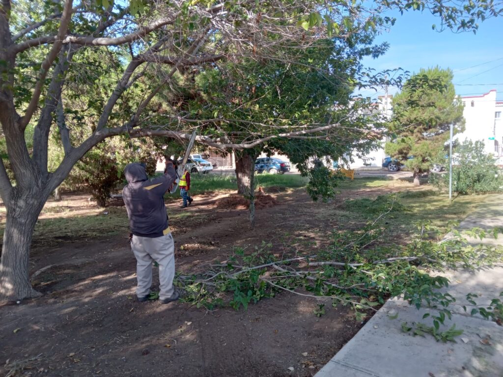 El titular de la dependencia, Daniel Iván Zamarrón Saldaña, dio a conocer que en el parque ubicado en la calle Melquiades Alanís y Delfos se hizo limpieza general y retiro de árboles secos.