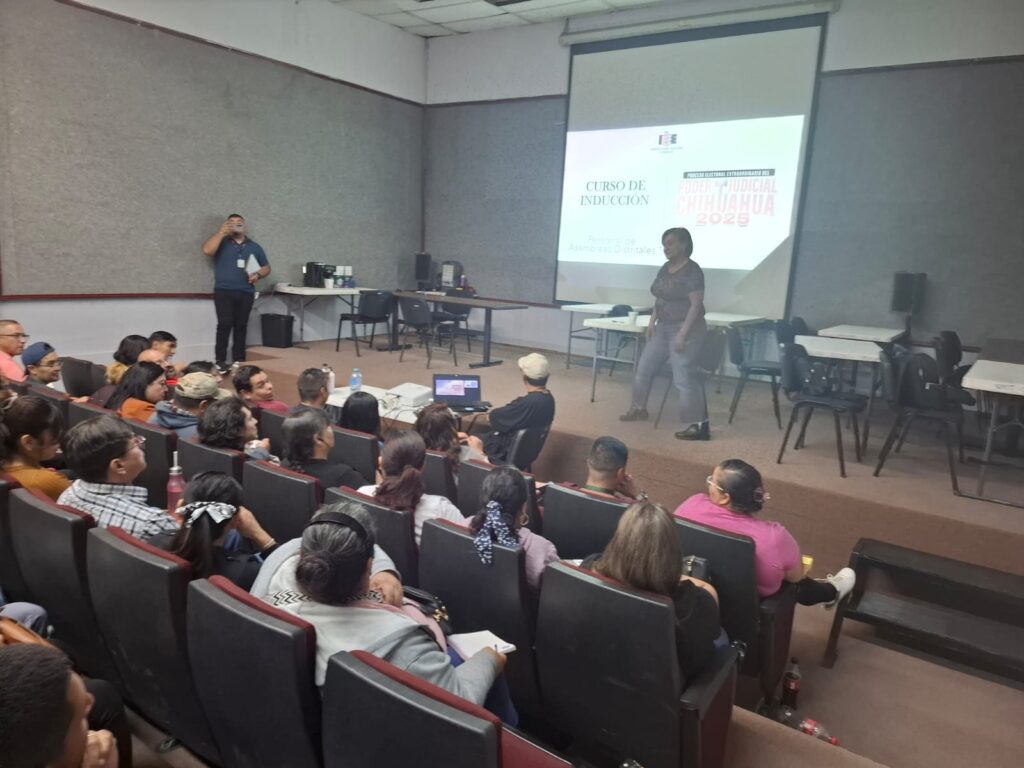 CHIHUAHUA, CHIH.-Con el objetivo de fortalecer el conocimiento y la preparación del personal de organización electoral, la Presidenta de la Asamblea Distrital Bravos, Olga Hernández, impartió un curso de inducción enfocado en el nuevo modelo de elección de los integrantes del Poder Judicial.