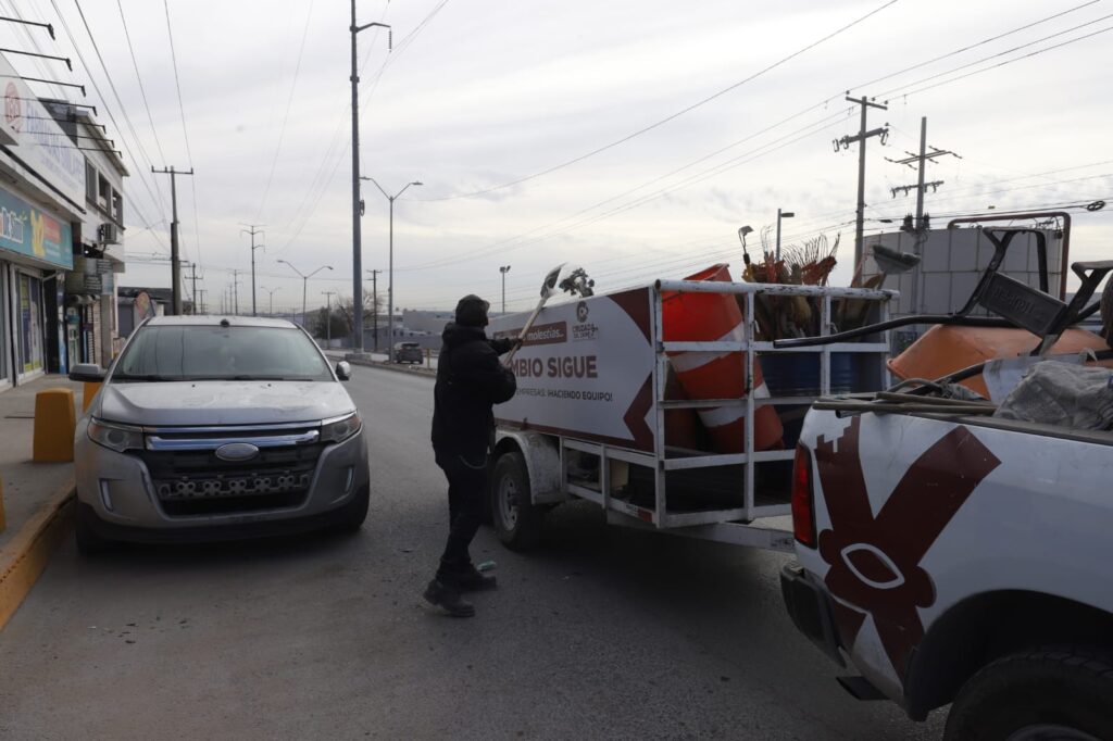 CD. JUAREZ, CHIH.- Como parte del programa Cruzada del Cambio, la Dirección General de Servicios Públicos Municipales, a través de la Dirección de Limpia, realiza trabajos de mantenimiento en la avenida Ponciano Arriaga, con el objetivo de mejorar la imagen urbana y las condiciones de tránsito.