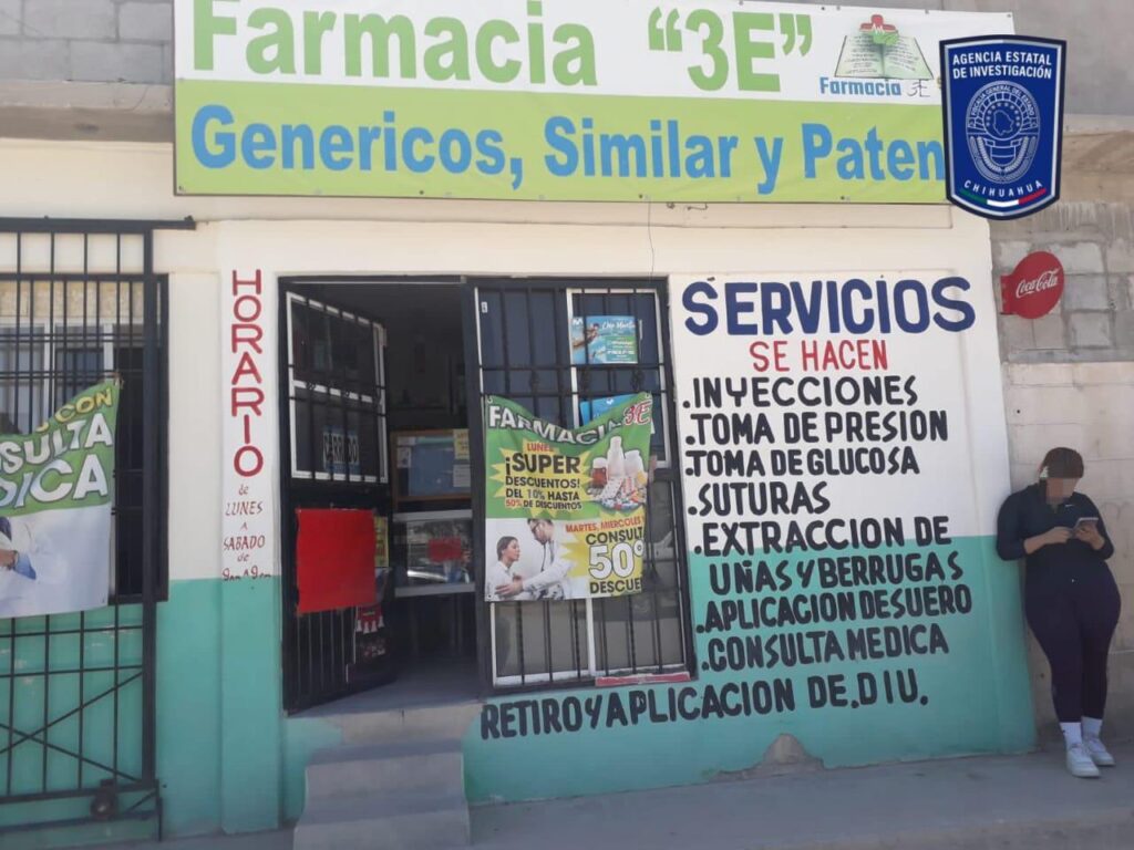 CD. JUAREZ, CHIH.- Agentes del Ministerio Público y de la Agencia Estatal de Investigación, adscritos a la Fiscalía de Distrito Zona Norte, cumplimentaron órdenes de cateo a dos establecimientos de las farmacias «3E», por los delitos de usurpación de identidad, usurpación de profesiones, falsificación o alteración y uso indebido de documentos.