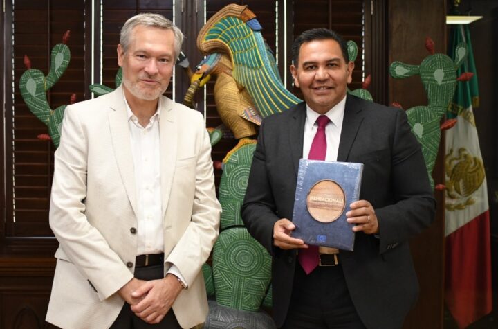 POR: REDACCION. CD. JUAREZ, CHIH.- El Presidente Municipal, Cruz Pérez Cuéllar recibió hoy al Embajador de la Unión Europea en...