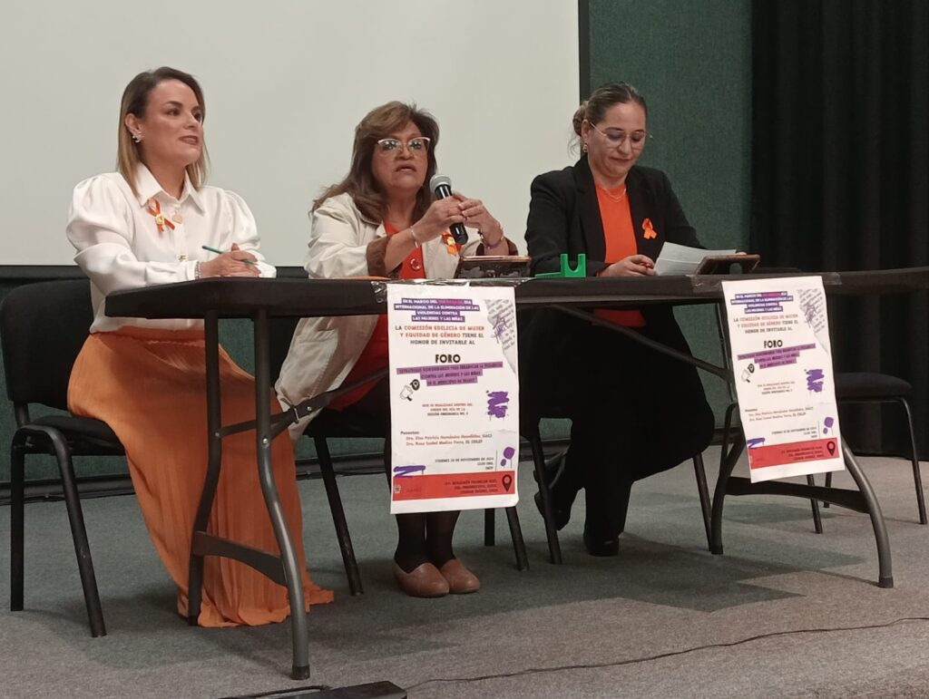 Fueron las académicas, Dra. Elsa Patricia Hernández Hernández, maestra investigadora de la UACJ y Coordinadora de la Maestría en Estudios interdisciplinarios de género y la Dra. Rosa Isabel Medina Parra, del Colegio de la Frontera, quienes estuvieron a cargo del Foro organizado por las regidoras Martha Patricia Mendoza Rodríguez (Morena) Sandra Marbel Valenzuela Martínez (PT) y Gloria Mirazo de la Rosa (MC).