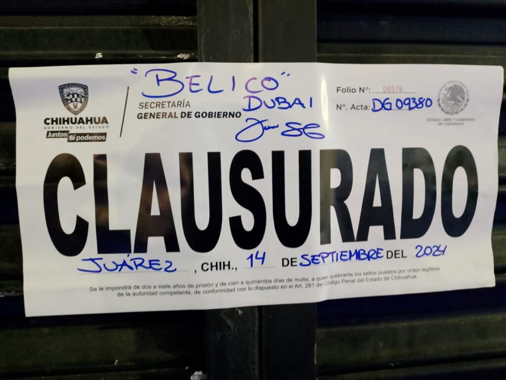- Salón de baile “Prive (PLAN B)”, por operar fuera de horario (Chihuahua)