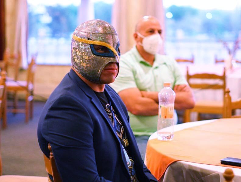 La máscara que ahora lleva puesta el campeón de ligas mayores, guarda homenaje a Sergio Aguirre Martínez, de quien heredó su pasión por la lucha y su máscara.