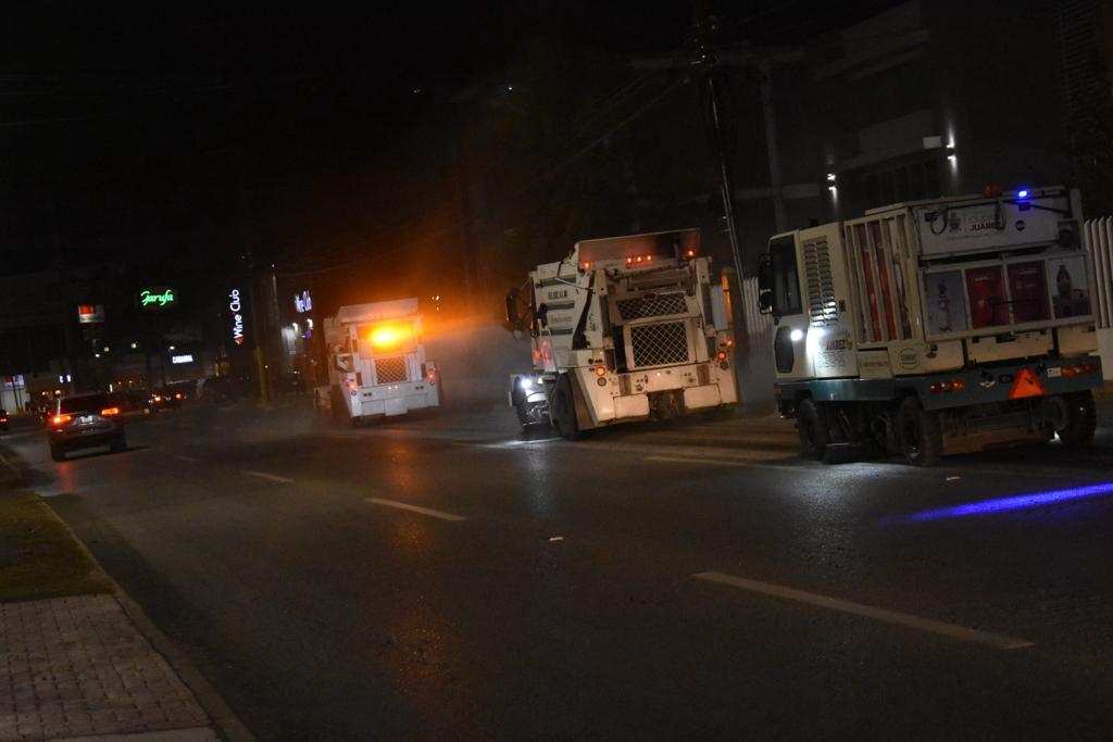 CD. JUAREZ, CHIH.- A fin de complementar las actividades de limpieza para el retiro de tierra de arrastre de las vialidades, personal de la Dirección de limpia mantiene recorridos nocturnos con las barredoras mecánicas en las principales avenidas en distintos puntos de la ciudad.