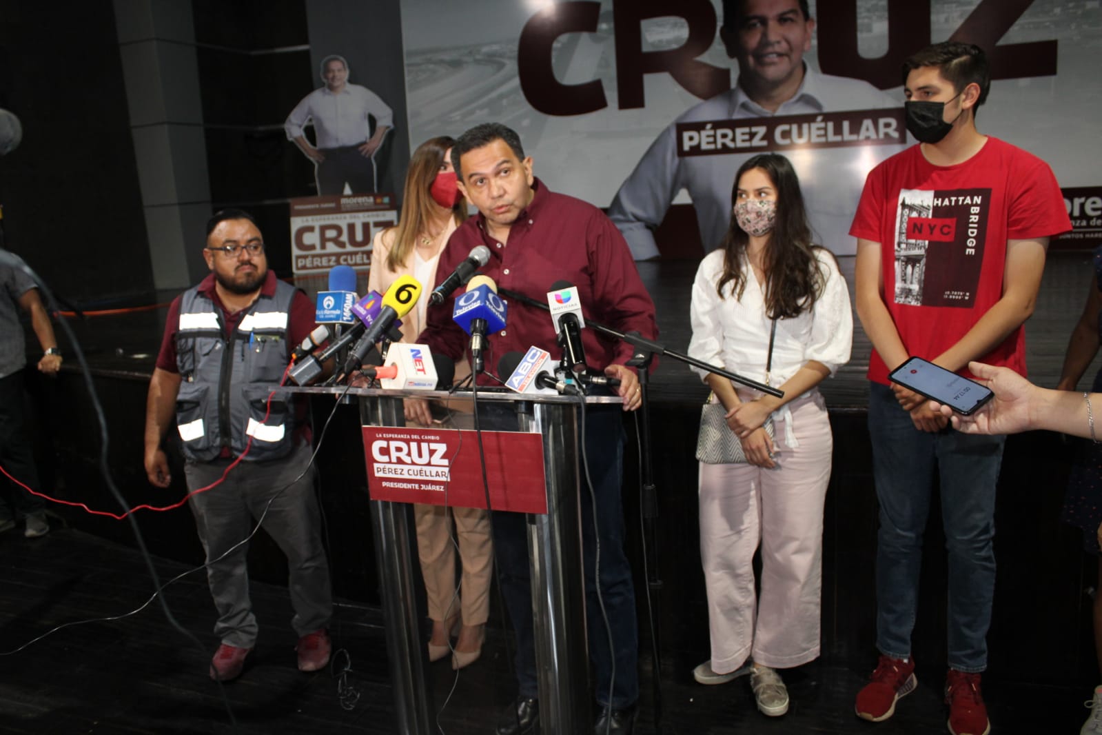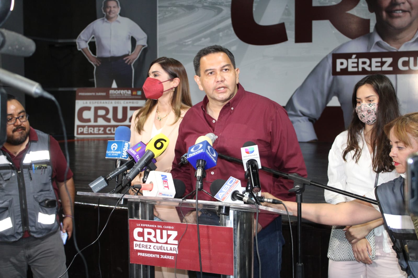 Cruz Pérez Cuéllar insistió en que no hay duda sobre su triunfo, y dijo de manera categórica que defenderán la victoria por todas las vías necesarias, como la jurídica y la política, ya que el pueblo de Juárez ha decidido su victoria: “Juárez, dijo, se ha vestido de guinda, Juárez es Morena”.