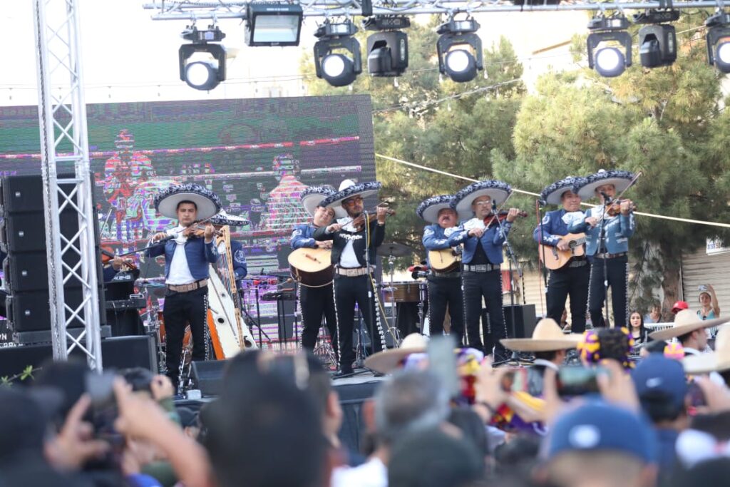 La parte artística inició con la presentación del mariachi “Así es México”, acompañado de un colorido ballet folclórico proporcionado por el Instituto para la Cultura del Municipio (IPACULT) y continuó con la transmisión en vivo de la pelea de box más esperada del día, proyectada en dos pantallas instaladas sobre la avenida Juárez.