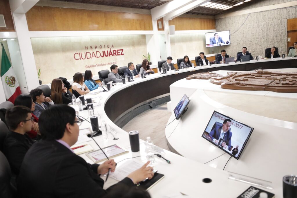 CD. JUAREZ, CHIH.- Al encabezar la Sesión de Cabildo Juvenil 2025, el Presidente Municipal, Cruz Pérez Cuéllar destacó que la participación de los jóvenes fortalece la democracia y crece cuando ellos se involucran en la toma de decisiones y cuando diseñen los cambios que la ciudad necesita.