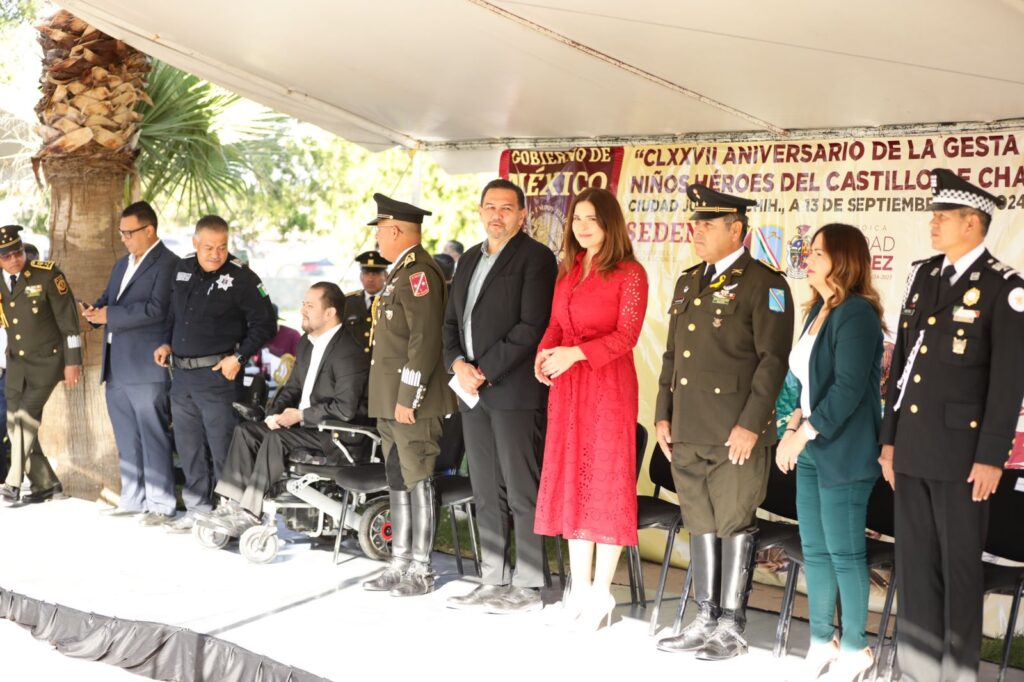 La ceremonia, efectuada en el monumento a los Niños Héroes, estuvo encabezada por el Presidente Municipal, Cruz Pérez Cuéllar y el General Brigadier de Estado Mayor, César Gutiérrez López, comandante de la Guarnición Militar de Juárez.