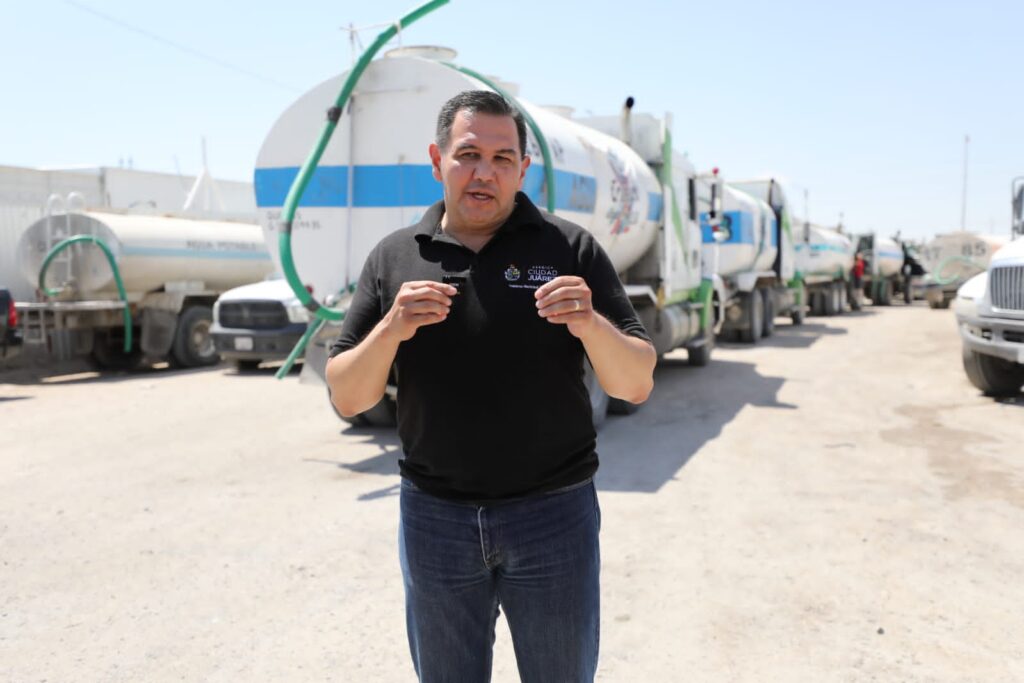 CD. JUAREZ, CHIH.- El Presidente Municipal, Cruz Pérez Cuéllar, consiguió hoy más agua que se llevará para las familias que viven en las colonias conocidas como Los Kilómetros, al surponiente de la ciudad.