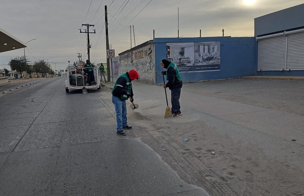 CD. JUAREZ, CHIH.- Como parte del programa Cruzada del Cambio, la Dirección de Limpia lleva a cabo una jornada de limpieza en diversas avenidas de la ciudad, con el objetivo de mejorar la imagen urbana.