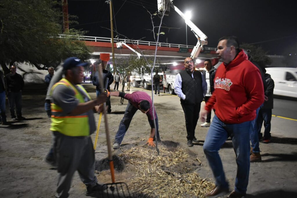 En el operativo nocturno estuvieron presentes los directores de área de Servicios Públicos, Abraham Espitia, de Alumbrado Público; Gibran Solís, de Limpia y Daniel Zamarrón, de Parques y Jardines, así como personal operativo de las tres dependencias.
