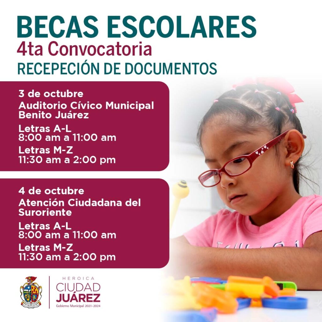CD. JUAREZ, CHIH.- La Dirección de Educación Municipal dio inicio a la cuarta convocatoria del programa de Becas de Equidad Social, por lo que invita a la ciudadanía a tramitar los beneficios para los estudiantes de nivel básico y media superior.