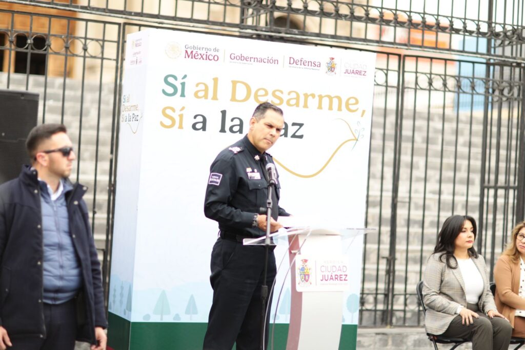 CD. JUAREZ, CHIH.- El Presidente Municipal, Cruz Pérez Cuéllar, dio el arranque a la campaña «Sí al desarme, sí a la paz», que tiene como objetivo generar estrategias que fortalezcan la seguridad y promover la paz en esta frontera.