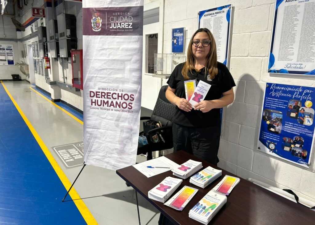 CD. JUAREZ, CHIH.- La Dirección de Derechos Humanos del Municipio realizó una jornada informativa en la empresa Norma Group, turno vespertino, con el objetivo de acercar información y orientación sobre derechos humanos a las personas que laboran en la industria maquiladora.