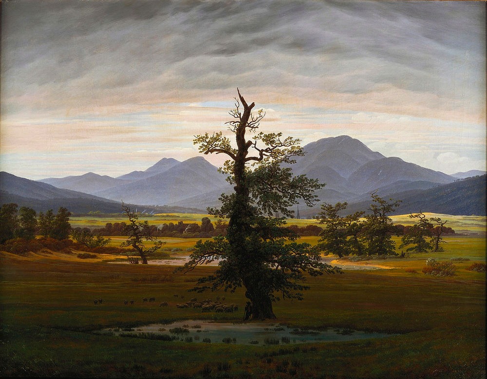 Casper David Friedrich, nació en 1774 in Greifswald, Pomerania. Friedrich fue conocido por sus paisajes románticos y melancólicos, en los que buscaba expresar la conexión entre la naturaleza y el mundo interior del ser humano. El arte de Friedrich se caracteriza por el empleo y habilidad de la luz, el color y la composición para transmitir emociones y estados de ánimo, su paleta de colores suele ser suave y sutil, con predominio de tonos oscuros y grises.