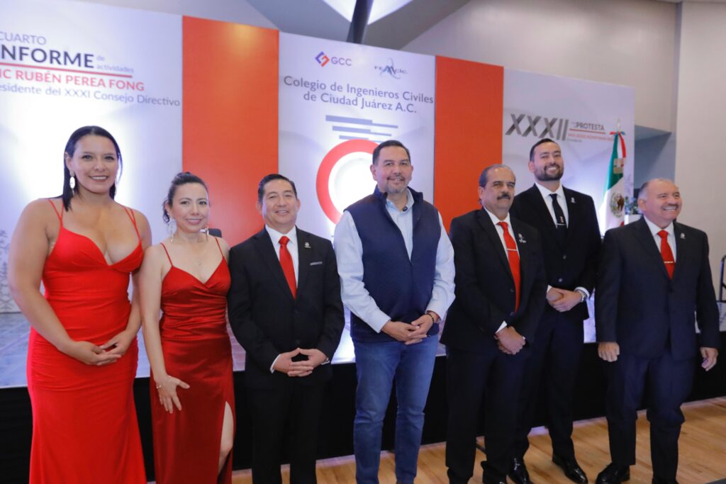 CD. JUAREZ, CHIH.-Durante el informe de actividades y relevo del Consejo Directivo del Colegio de Ingenieros Civiles de Ciudad Juárez, el Presidente Municipal, Cruz Pérez Cuéllar, reconoció el trabajo realizado por Rubén Perea Fong al frente del XXXI Consejo, así como la importancia de la coordinación entre gobierno, sector profesional, la academia y sociedad civil para enfrentar los retos de la ciudad.