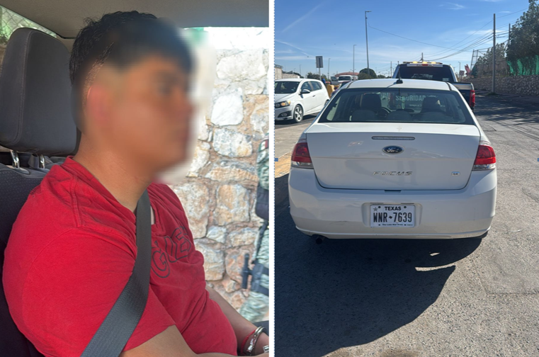 El sujeto fue identificado como Erick Brayan V. de 25 años de edad, quien iba a bordo de un vehículo Ford Focus con placas de Texas, mismo fue detenido y puesto a disposición de la autoridad correspondiente.