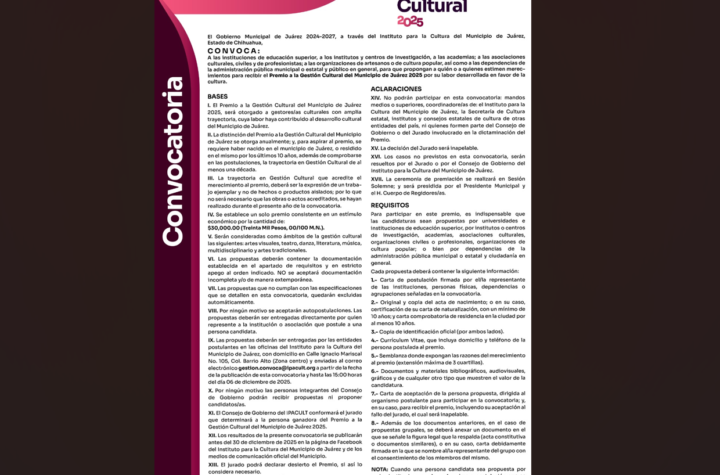 El IPACULT lanza convocatoria para la entrega de Premio a la Gestión Cultural 2025