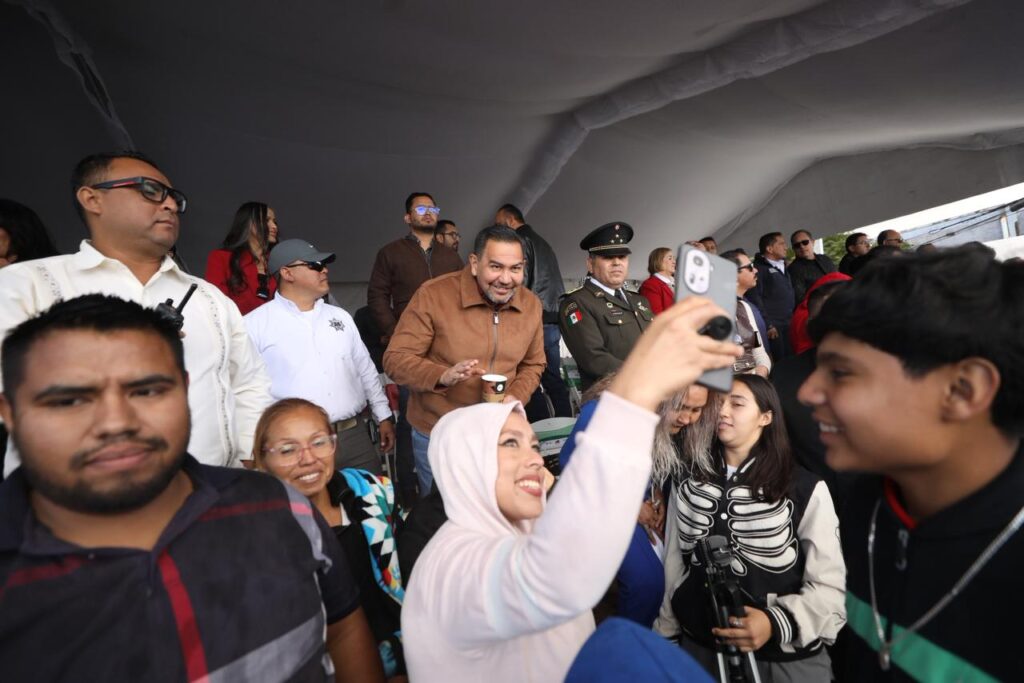 La Secretaría de Seguridad Pública Municipal participó con escoltas, la unidad canina, vehículos tácticos y equipamiento con tecnología de inteligencia artificial, además del Centro de Mando Móvil.