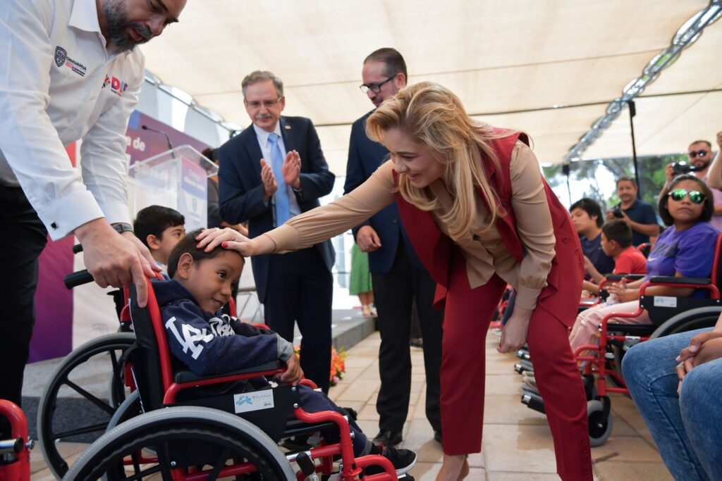 El evento se celebró en la explanada del Estadio Olímpico de la Ciudad Deportiva, donde la mandataria estatal otorgó de manera simbólica 3 sillas de ruedas, a niños que reciben el apoyo del DIF Estatal.