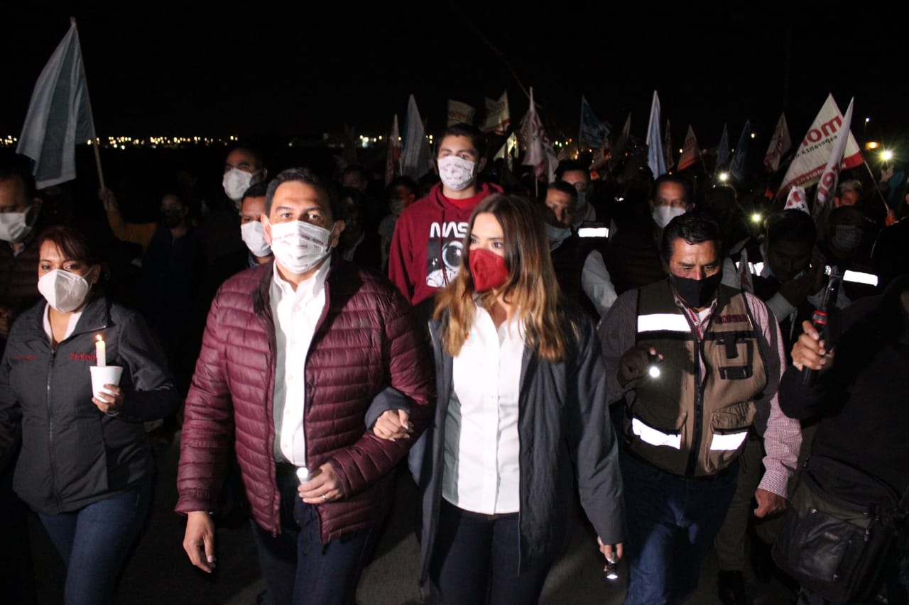 “Queremos ser la esperanza del cambio y queremos ser la esperanza que Ciudad Juárez se merece”, dijo Pérez Cuéllar ante más de 250 personas que lo siguieron en la caminata de un kilómetro y medio sobre la avenida Fundadores en medio de la oscuridad y a través del desierto; alumbrada la noche solo por la luna llena y las lámparas y velas de los asistentes.