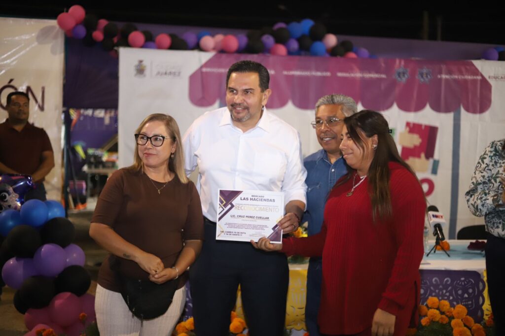 CD. JUAREZ, CHIH.- Con descuentos en trámites de permisos y un convivio el Presidente Municipal, Cruz Pérez Cuéllar, encabezó la Cruzada por el Comercio con comerciantes del Mercado Las Haciendas.