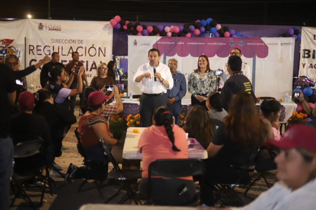 CD. JUAREZ, CHIH.- Con descuentos en trámites de permisos y un convivio el Presidente Municipal, Cruz Pérez Cuéllar, encabezó la Cruzada por el Comercio con comerciantes del Mercado Las Haciendas.