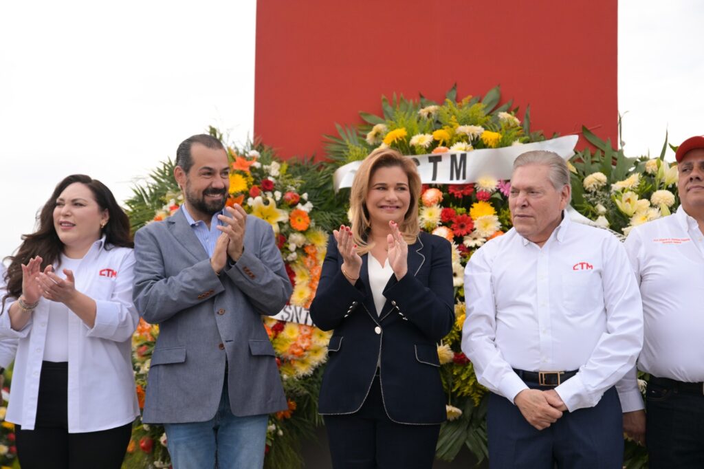 Al pie de La Guirnalda, escultura ubicada en las avenidas Ocampo, y Deza y Ulloa, la mandataria estatal se comprometió a mantener el clima de paz laboral que prevalece en la entidad, así como las condiciones de competitividad para la atracción de más inversiones.