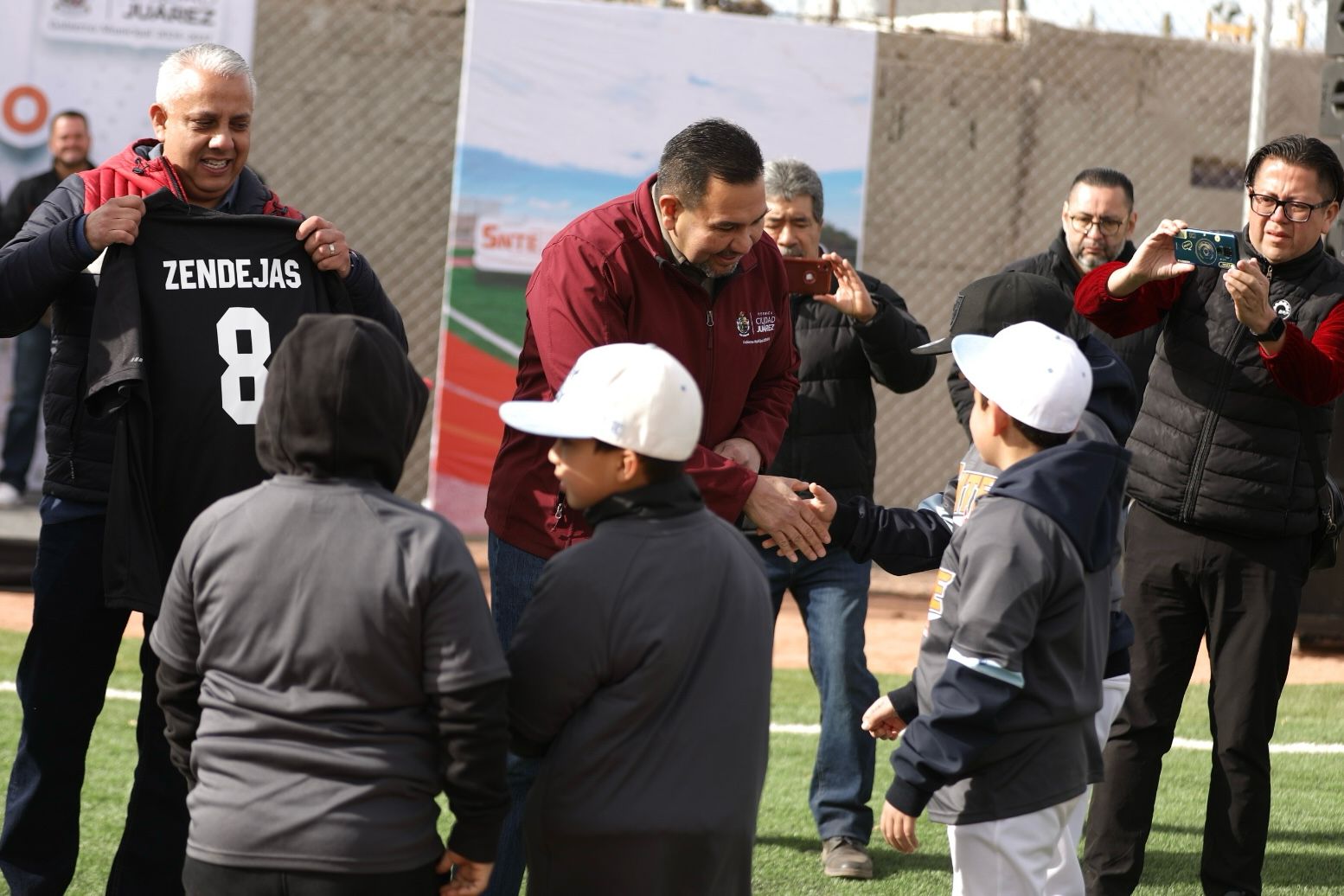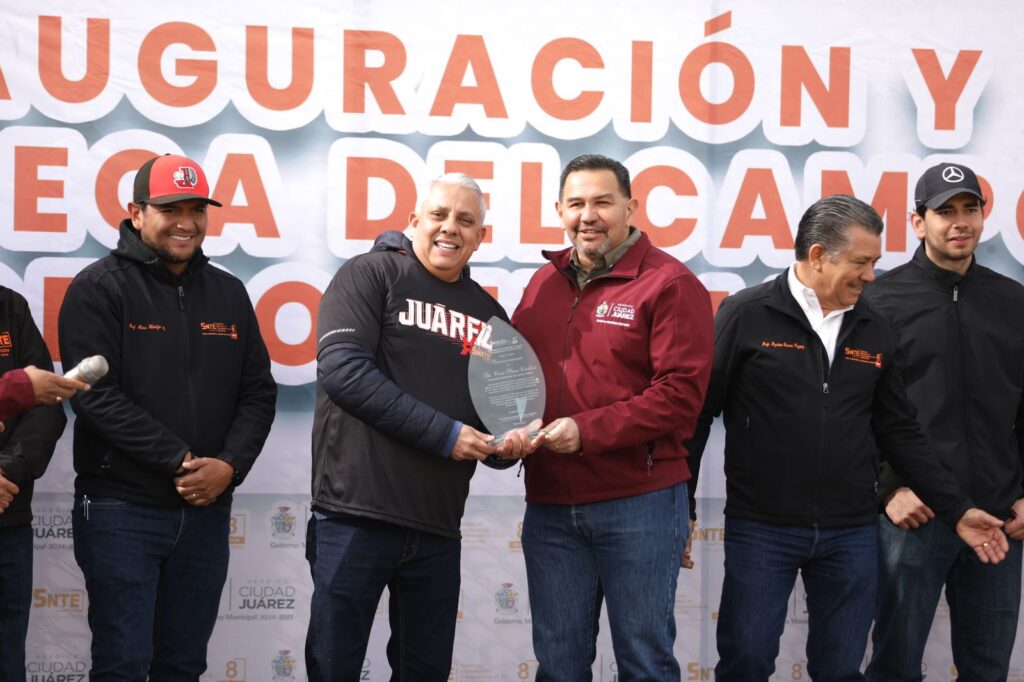 CD. JUAREZ, CHIH.- Gracias al programa del Presupuesto Participativo y a la buena organización de la ciudadanía, esta mañana se hizo la entrega oficial del campo de Softball SNTE 8, por parte del Presidente Municipal, Cruz Pérez Cuéllar.