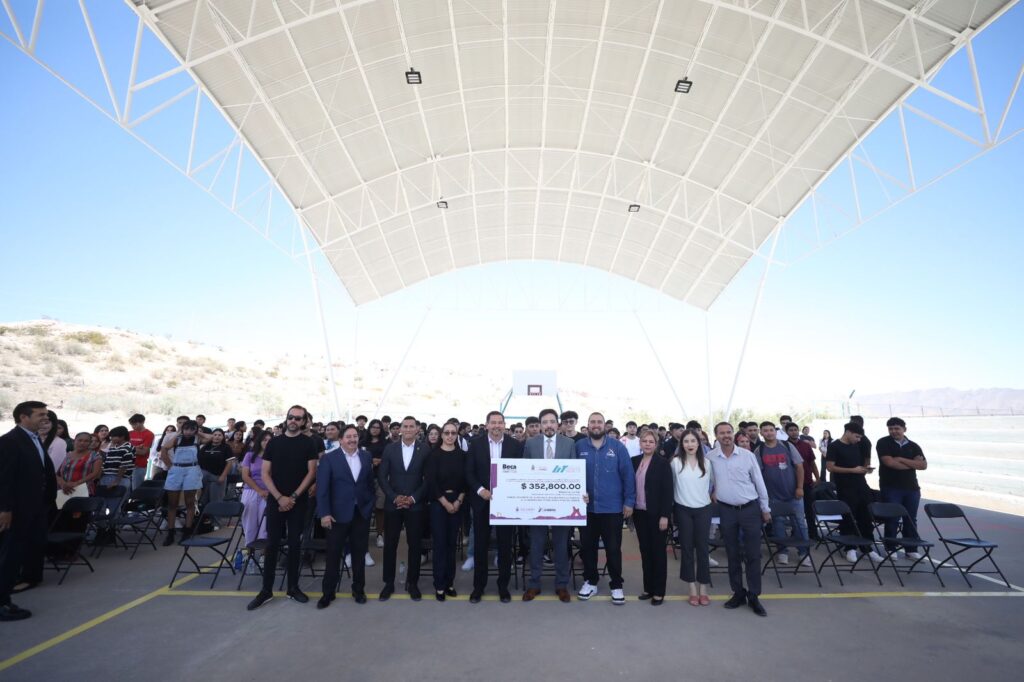 Por su parte, el edil entregó un cheque simbólico por la cantidad de 352 mil 800 pesos por concepto de las becas de nuevo ingreso.