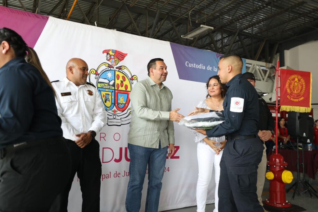 CD. JUAREZ, CHIH.- Con una inversión de casi cuatro millones de pesos, el personal del Departamento de Bomberos y Rescate Municipal recibió nuevos uniformes y equipo de protección contra incendios.