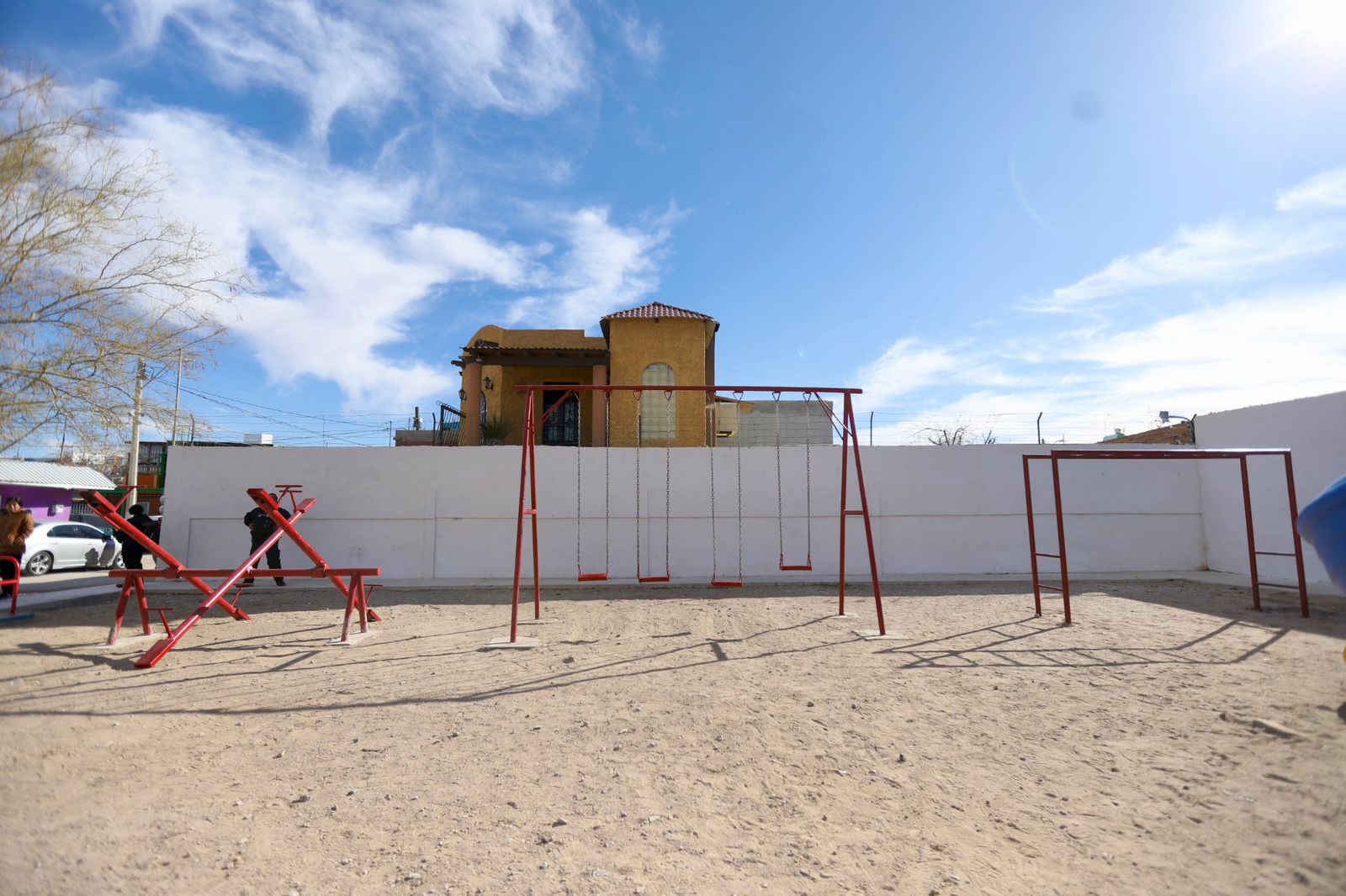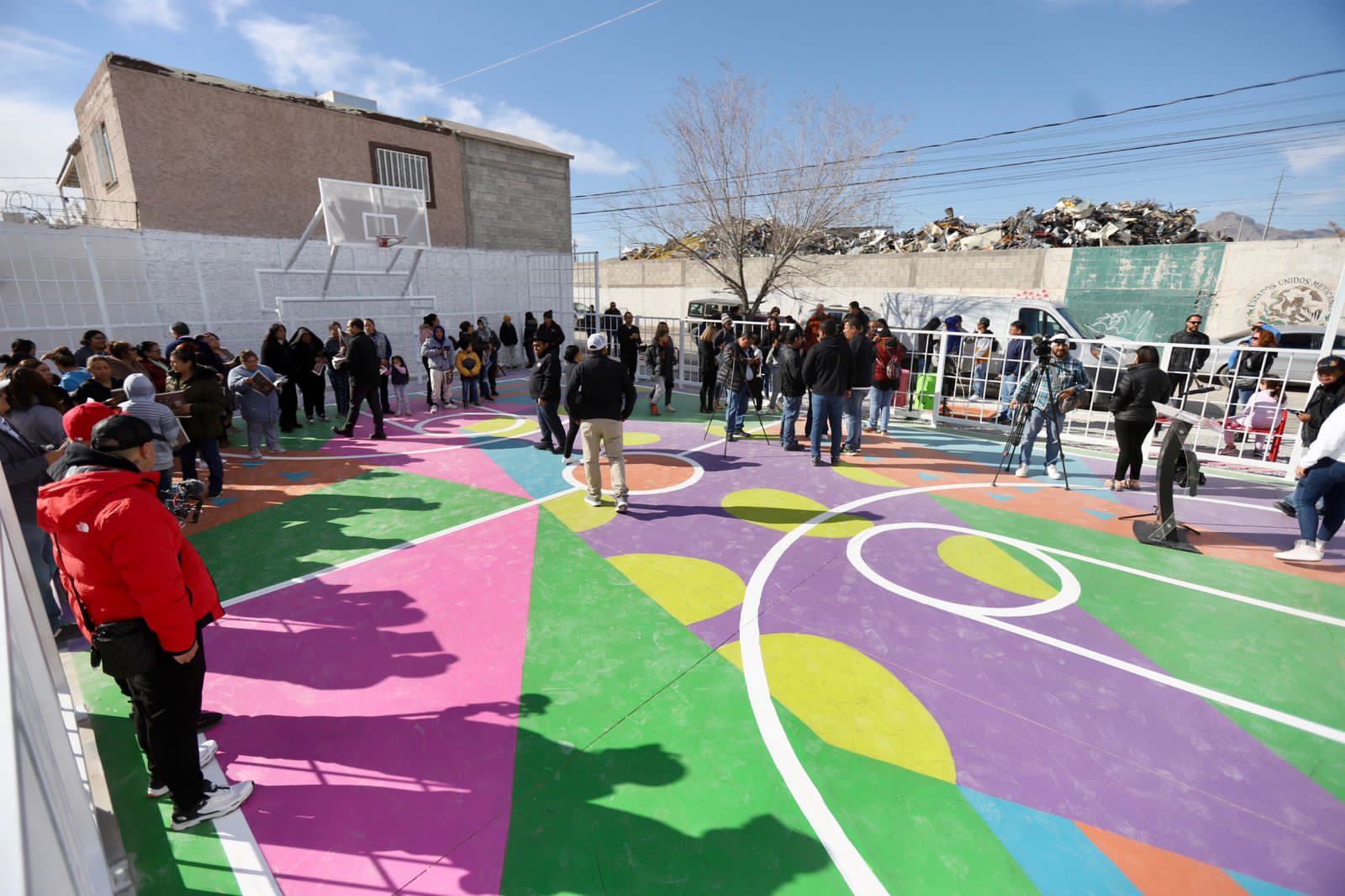 CD. JUAREZ, CHIH.- Con una inversión de un millón 329 mil 305 pesos fue transformado el entorno de los vecinos de la colonia La Presa, quienes recibieron un parque con canchas, juegos y murales por parte del Gobierno Municipal.