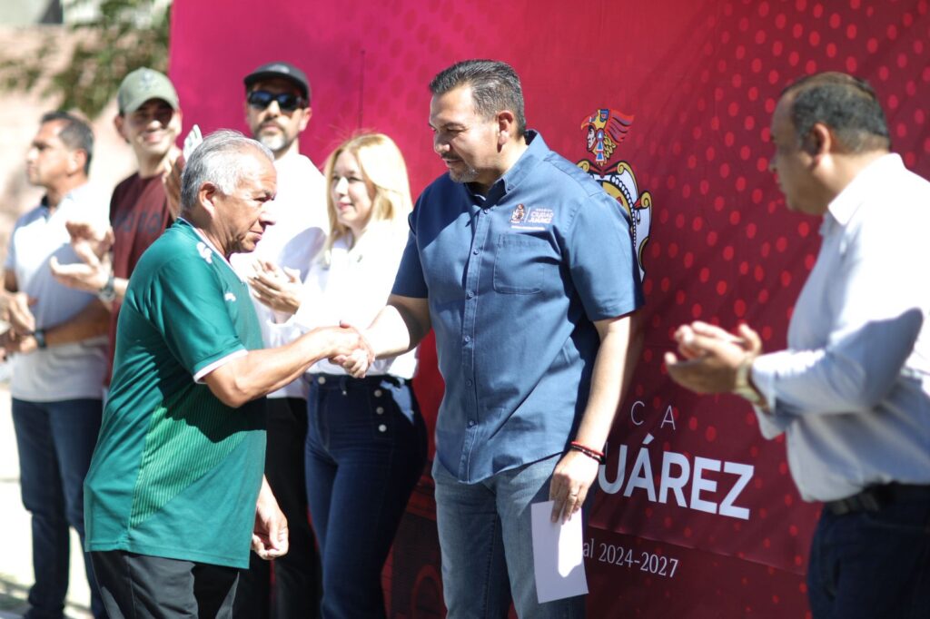 CD. JUAREZ, CHIH.- El Presidente Municipal Cruz Pérez Cuéllar encabezó la entrega oficial del parque Eduardo Barbachano, ubicado en el fraccionamiento Hacienda de las Torres, un espacio completamente rehabilitado como parte del programa de Presupuesto Participativo 2024, en beneficio de cientos de familias del sector.